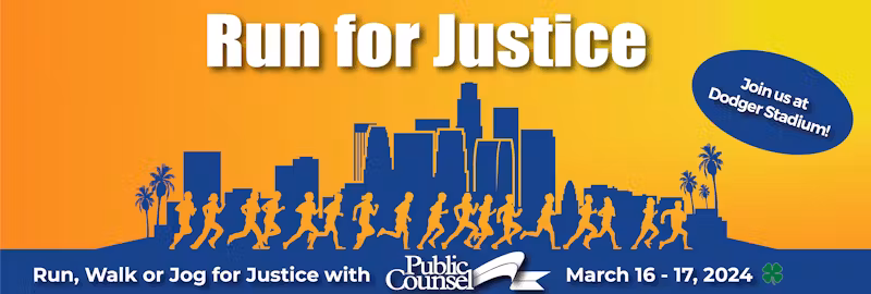 Public Counsel is proud to be an official charity of the Nonprofit Partner Program for the Los Angeles Marathon, Charity Challenge and LA Big 5k once again. We are pleased to invite you to come out and Run for Justice with us at the LA Big 5k run/walk on March 16, 2024, or the full L.A. Marathon or Charity Half-Marathon on March 17, 2024.